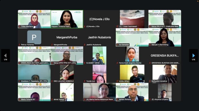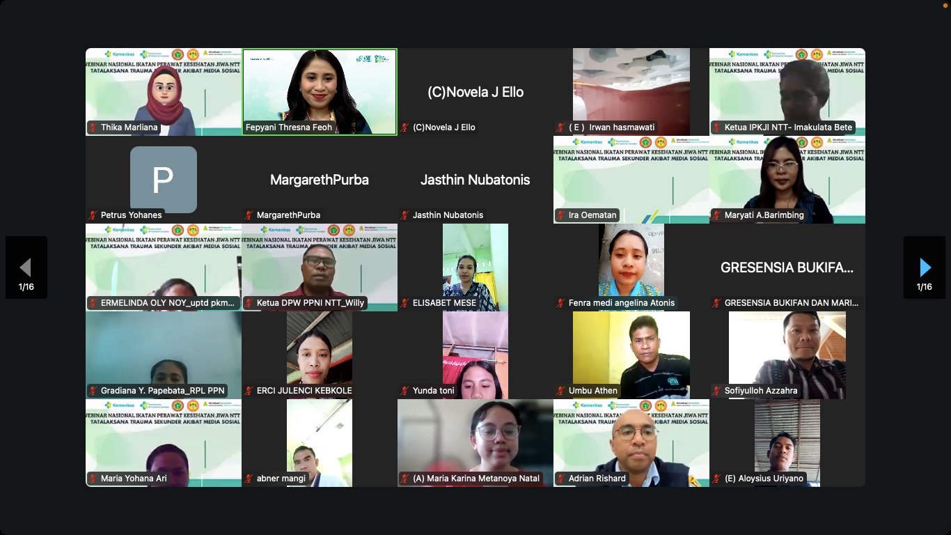 Pengurus Wilayah Ikatan Perawat Kesehatan Jiwa Indonesia Provinsi Nusa Tenggara Timur (PW IPKJI NTT) sukses menyelenggarakan webinar nasional bertema “Tatalaksana Trauma Sekunder Akibat Media Sosial”, Rabu (22/10/2025). Kegiatan ini menjadi bagian dari rangkaian peringatan Hari Kesehatan Jiwa Sedunia (HKJS) 2025 yang digelar oleh IPKJI NTT.